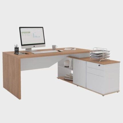 Mesa para Escritório Diretor em L 3 Gavetas 1 Porta Spring Yescasa