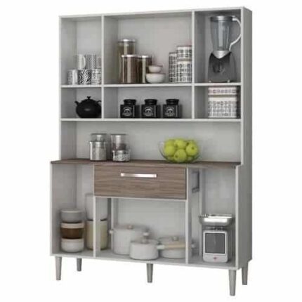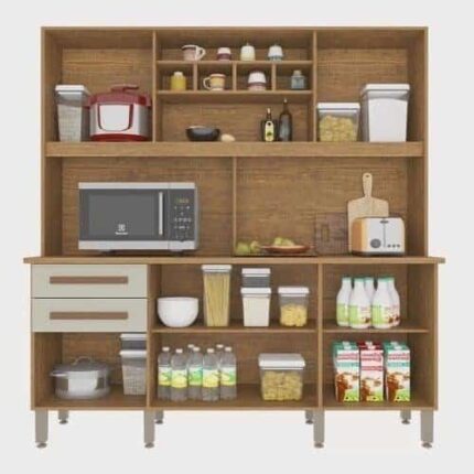 Cozinha completa com 6 portas, sendo uma superior com pistão a gás e duas amplas gavetas com corrediça metálica, 3 prateleiras internas e ainda possui pés reguláveis. Com este armário a sua cozinha vai ficar mais linda e aconchegante.