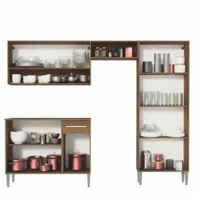 A Cozinha Compacta Emilly se destaca por ser compacta e prática para o dia-a-dia. Seu espaço interno é bem distribuído e as tonalidades amadeirado e preto combinam com ambientes modernos ou clássicos.