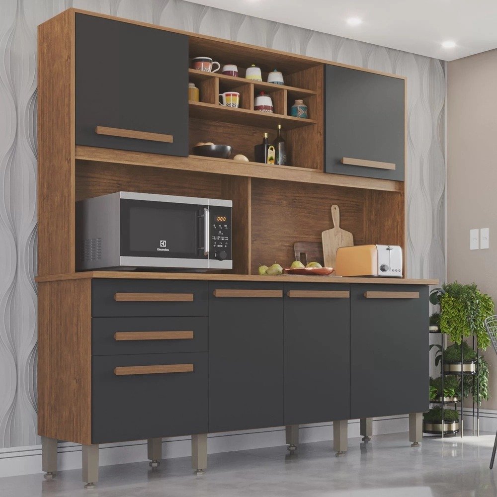 Em até 1x de R$516,61 sem juros À vistaR$439,12no Pix Armário de Cozinha Completa Madesa Reims 260001 com Balcão e Tampo – Preto/Rustic