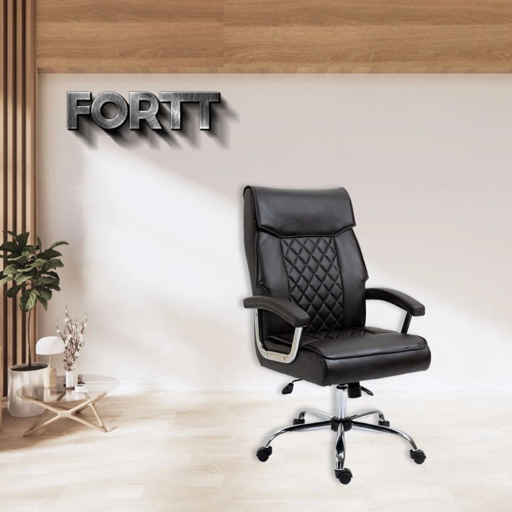 Cadeira de Escritório Presidente Base Cromada com Rodinha Fortt Munique Preta – CPF14-P