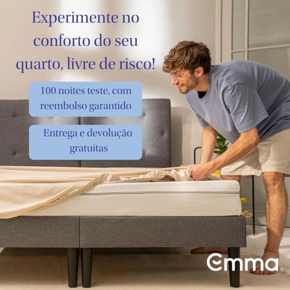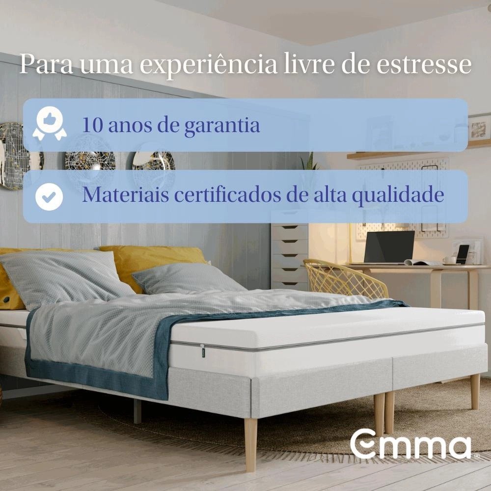 Dupla Face: O colchão Emma Duo tem a tecnologia dupla face, de um lado o mais macio proporcionando o Alto conforto, do outro o mais firme proporcionando o Suporte, ideal para quem tem dores nas costas e busca um produto ortopédico. Conforto a noite toda: A combinação das camadas do Emma Duo oferecem uma sensação duradoura de conforto, suporte e relaxamento, independentemente do lado escolhido. 10 anos de garantia: Devido a sua composição de materiais de alta durabilidade, certificados através de teste laboratório DIN-Spec. Experimente 100 noites na sua casa: Oferecemos 100 noites para você experimentar o colchão no conforto do seu quarto. Caso não esteja satisfeito, a devolução é simples e à domicílio. Conforto ortopédico: Independente do seu lado de preferência, a densidade do Emma Duo contribui para a melhor postura corporal.. Evita dores nas costas: Devido à sua densidade progressiva, o Emma Duo é ideal para pessoas com dores nas costas, pois é firme e distribui o peso igualmente em toda a sua superfície. Capa Hipoalergênica lavável: O tecido de alta qualidade evita o acúmulo de ácaros e melhora a circulação de ar, portanto o seu colchão não esquenta demais no verão, garantindo noites frescas e confortáveis, além de ser indicado para quem possui alergias.