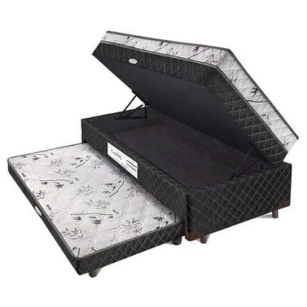 | Material da base | Estrutura em madeira Eupalipto Domus, tecido Viscopoli com bordado em Matelassê, tampo com espuma D28 selada certificada pelo inmetro. Acompanha jogo de Pés. Possui tratamento antialérgico e antiácaro. |