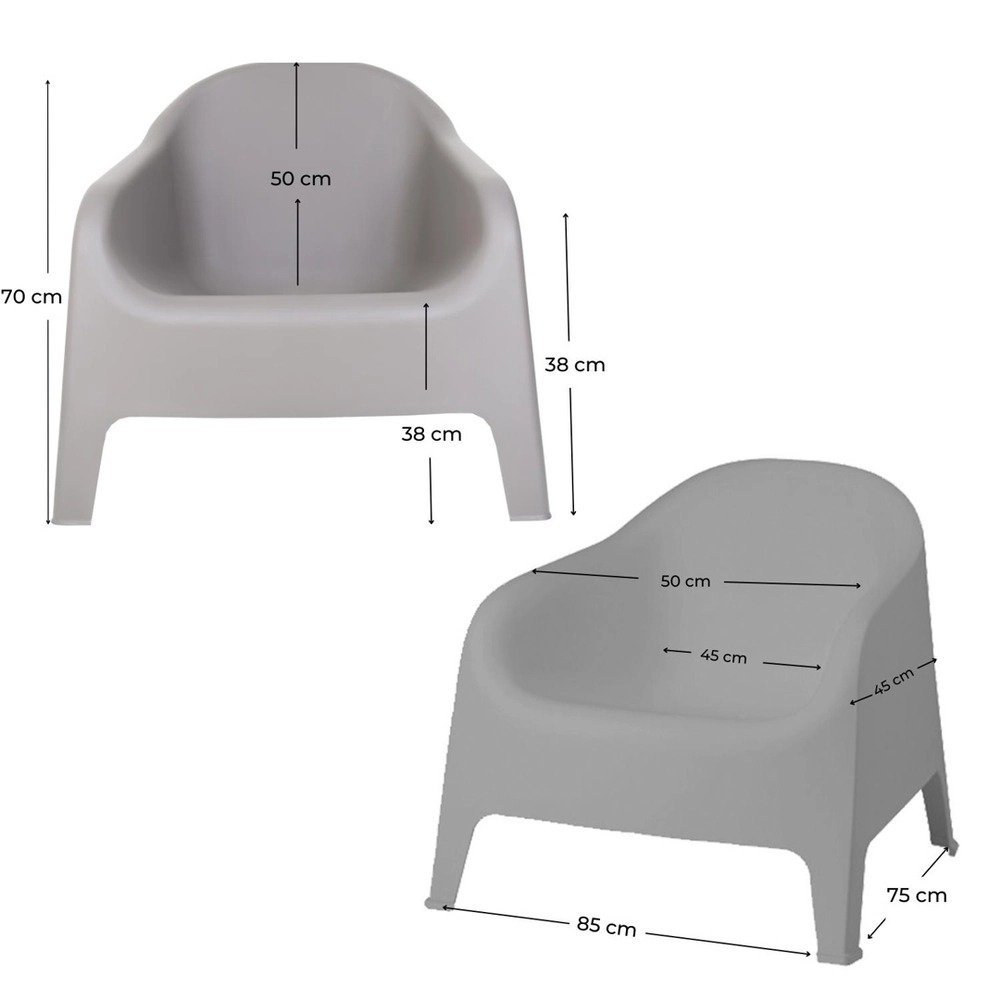 A poltrona Sakrpo é livre de manutenção e resistente ao desbotamento – perfeita para longos dias e noites ao ar livre. Pode ser usado tanto em ambientes internos quanto externos. Plástico polipropileno. Possui um pequeno dreno no assento que evita o acúmulo de água. Como pode ser empilhado, permite otimizar o espaço.