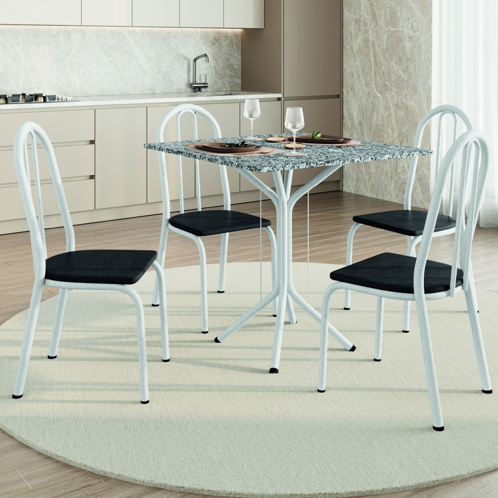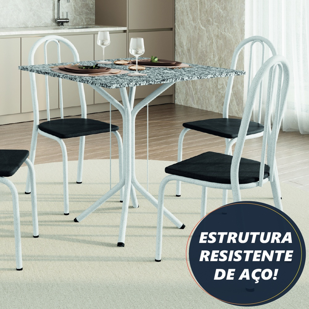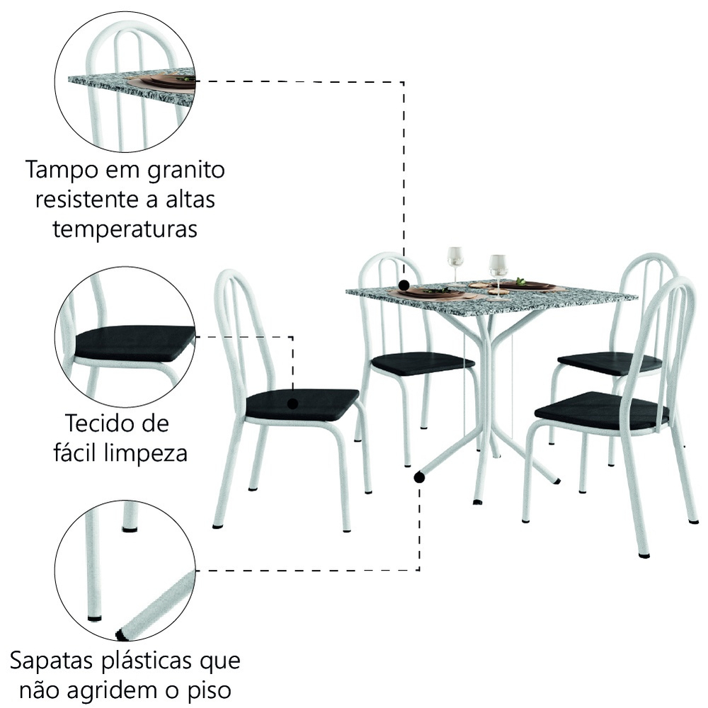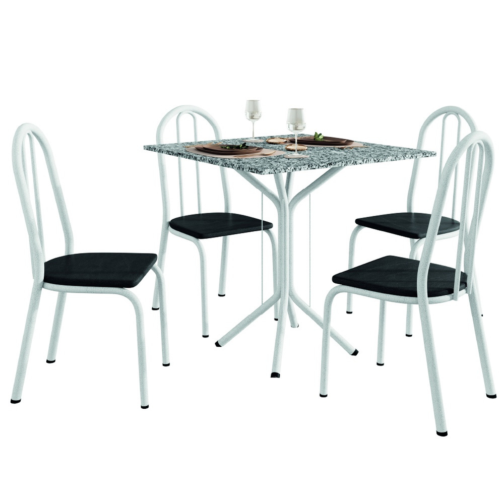 Conjunto Sala De Jantar Mesa Thais Com 4 Cadeiras Diva 0,70m Granito Branco/Preto Artefamol