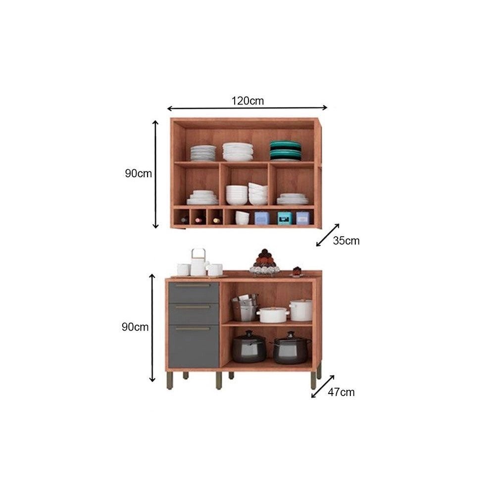 Abaixo segue os produtos do kit: Cozinha Completa Syrah 2 Peças (1 Armário + 1 Balcão) C2P05 Castanho/Chumbo – Ronipa