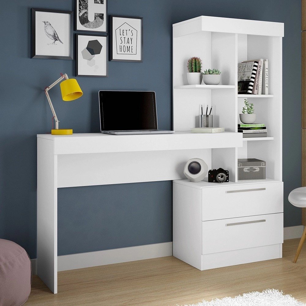 Escrivaninha com Estante Office com 2 Gavetas 6 Prateleiras para Escritorio Branco / Rosa Flex
