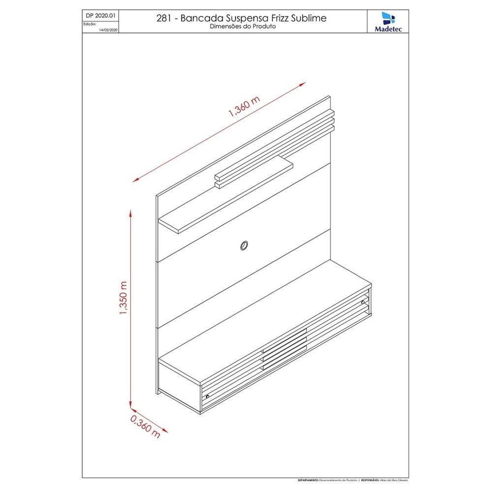 Espaço para tv: Largura (mm): 1360 – Altura (mm): 900