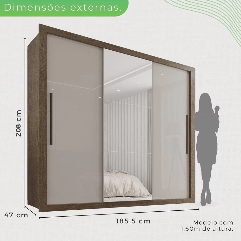 Em até 1x de R$551,82 sem juros À vistaR$469,05no Pix Guarda-roupa Fortaleza Sem Gavetas Com Espelho Cinamomo