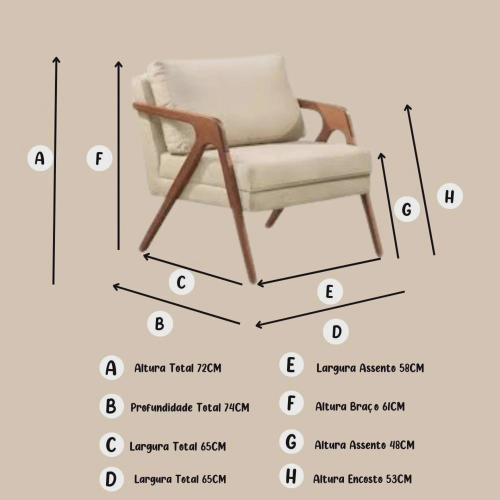 Kit 02 Poltrona Decorativa Opala Suede Bege smf decor