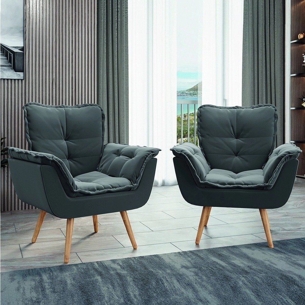Kit 2 Poltronas Decorativas Dubai Para Sala Veludo Cinza Selmer