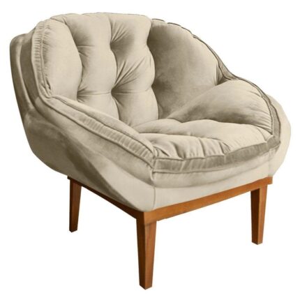 Em até 1x de R$217,21 sem juros À vistaR$184,63no Pix Poltrona Decorativa Veludo Base Madeira Castanho Bege
