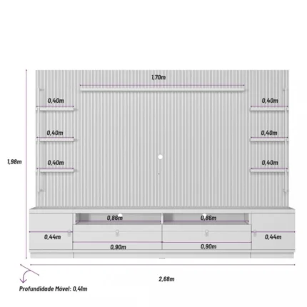 Painel Para TV Até 65 Polegadas Com Prateleira 1,80m Max Branco